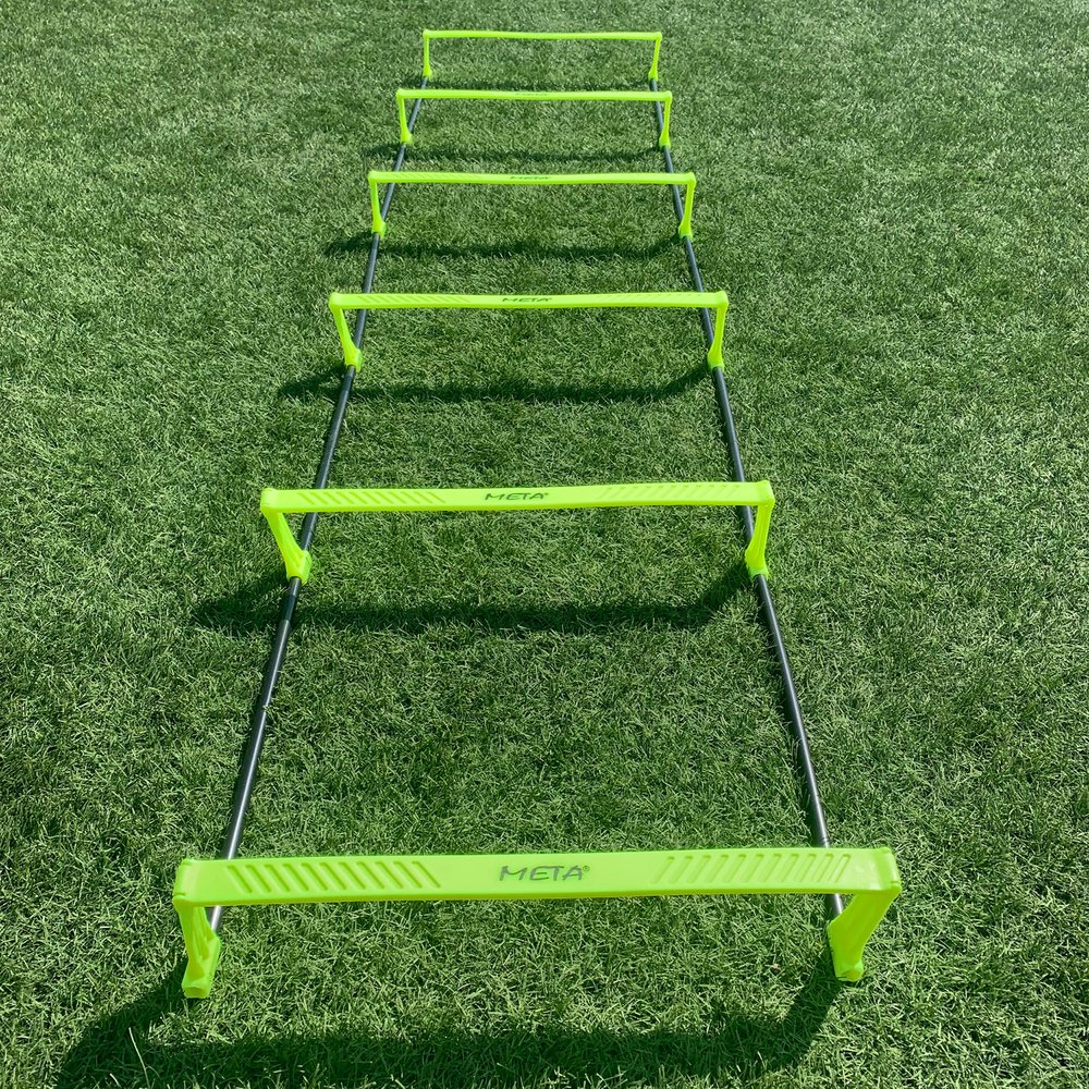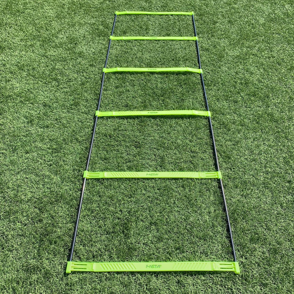 Повишената стълба за ловкост е предназначена да подобри пъргавината и скоростта на краката за спортисти. Неговият уникален дизайн позволява разнообразни упражнения и може да се превърне в препятствие с височина 10 см. Стълбата е с дължина 215 см, ширина 65 см и има 6 стъпала. Той е лесно сгъваем и сгъваем за удобно съхранение и транспортиране и се доставя с маркова чанта за носене за допълнителна преносимост. Това многофункционално оборудване е идеално за спортисти, които искат да подобрят своята пъргавина и скорост на краката в редица спортове и дейности.